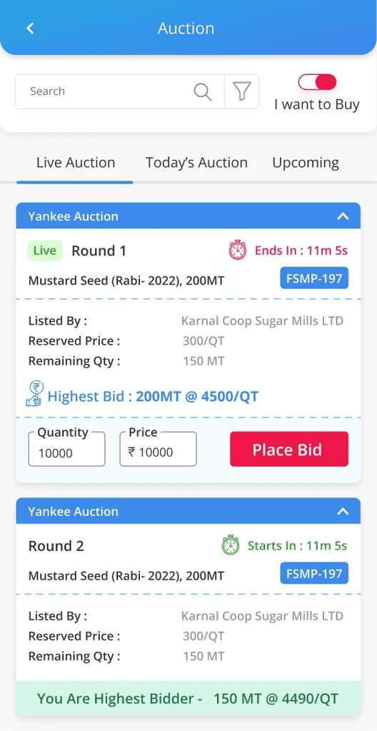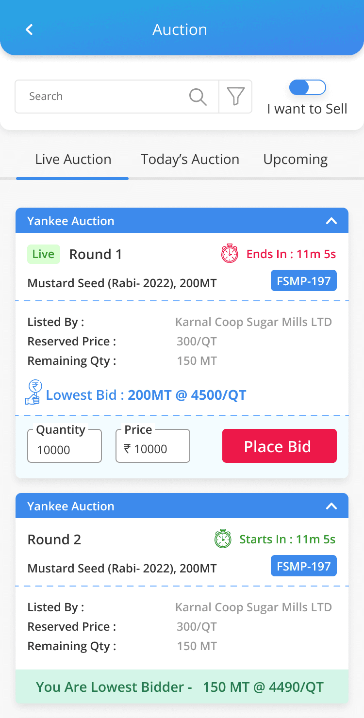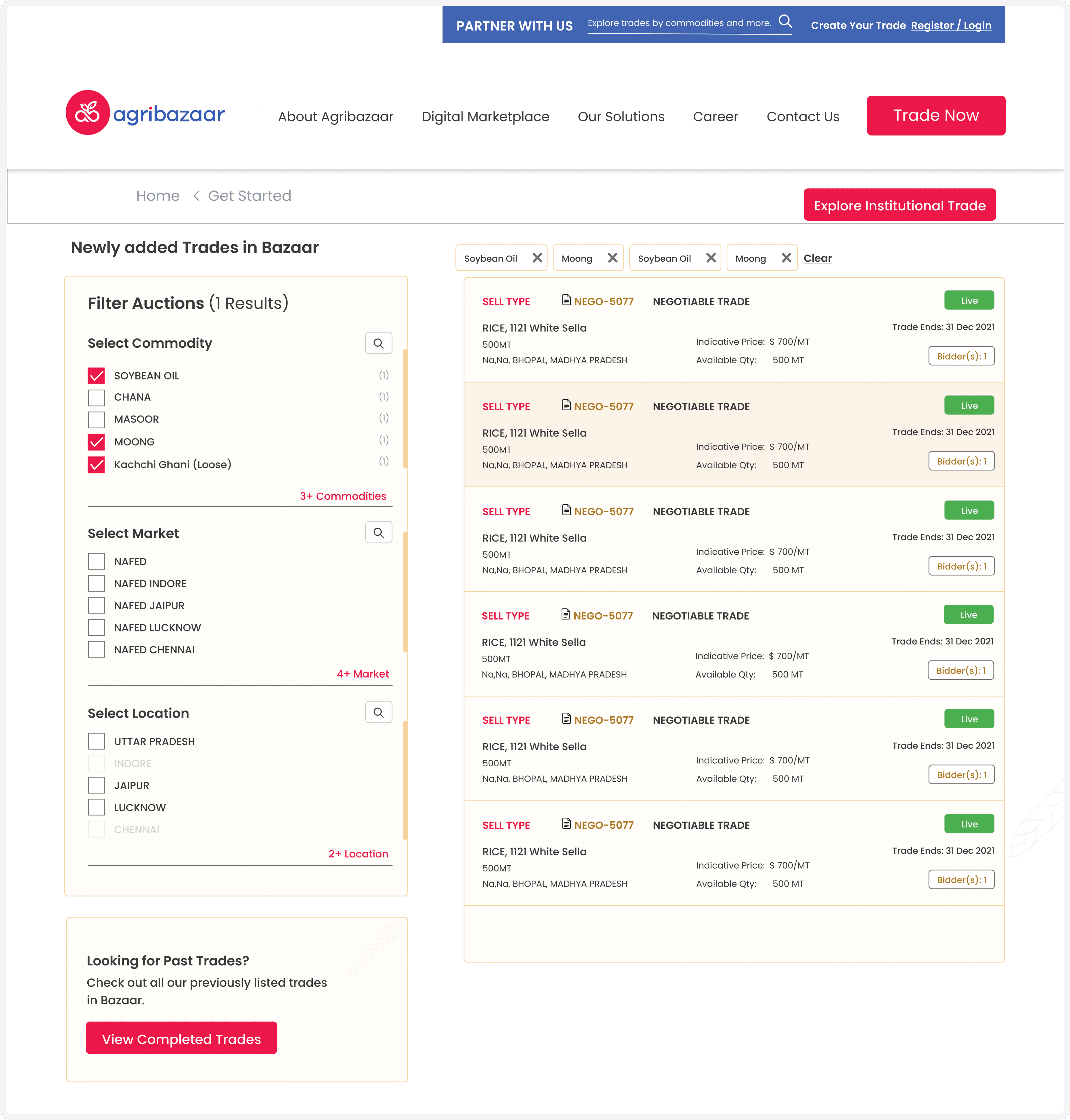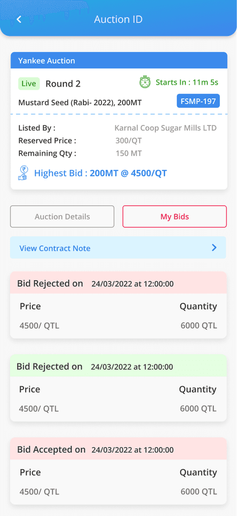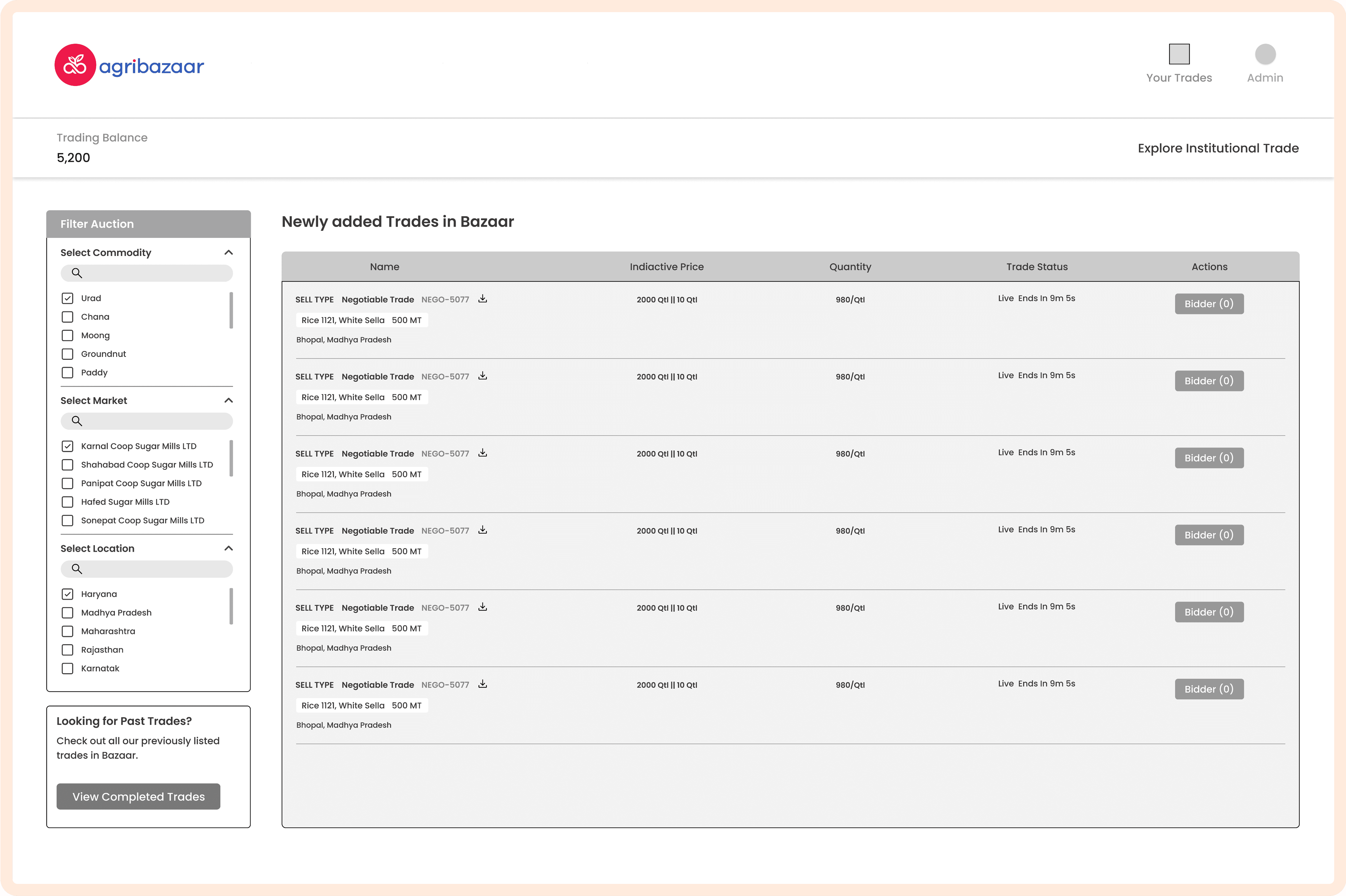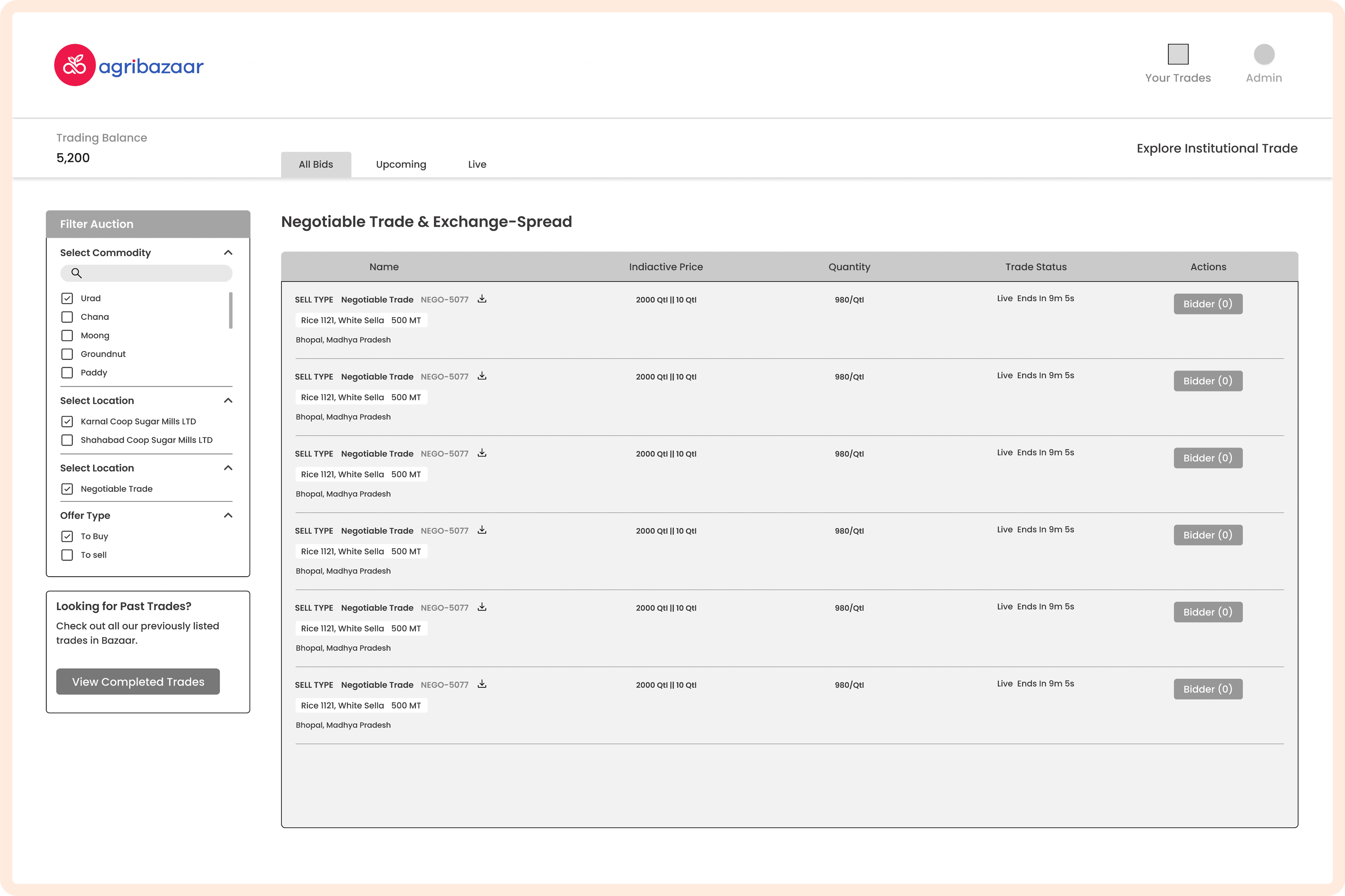 Following the implementation of the features in Agribazaar I played a key role in redesigning the auction screens to make bidding faster, more intuitive, and accessible for traders. we focused on simplifying the bidding process, improving real-time updates, and ensuring the interface was easy to navigate. This redesign not only improved user satisfaction but also increased engagement on the platform.