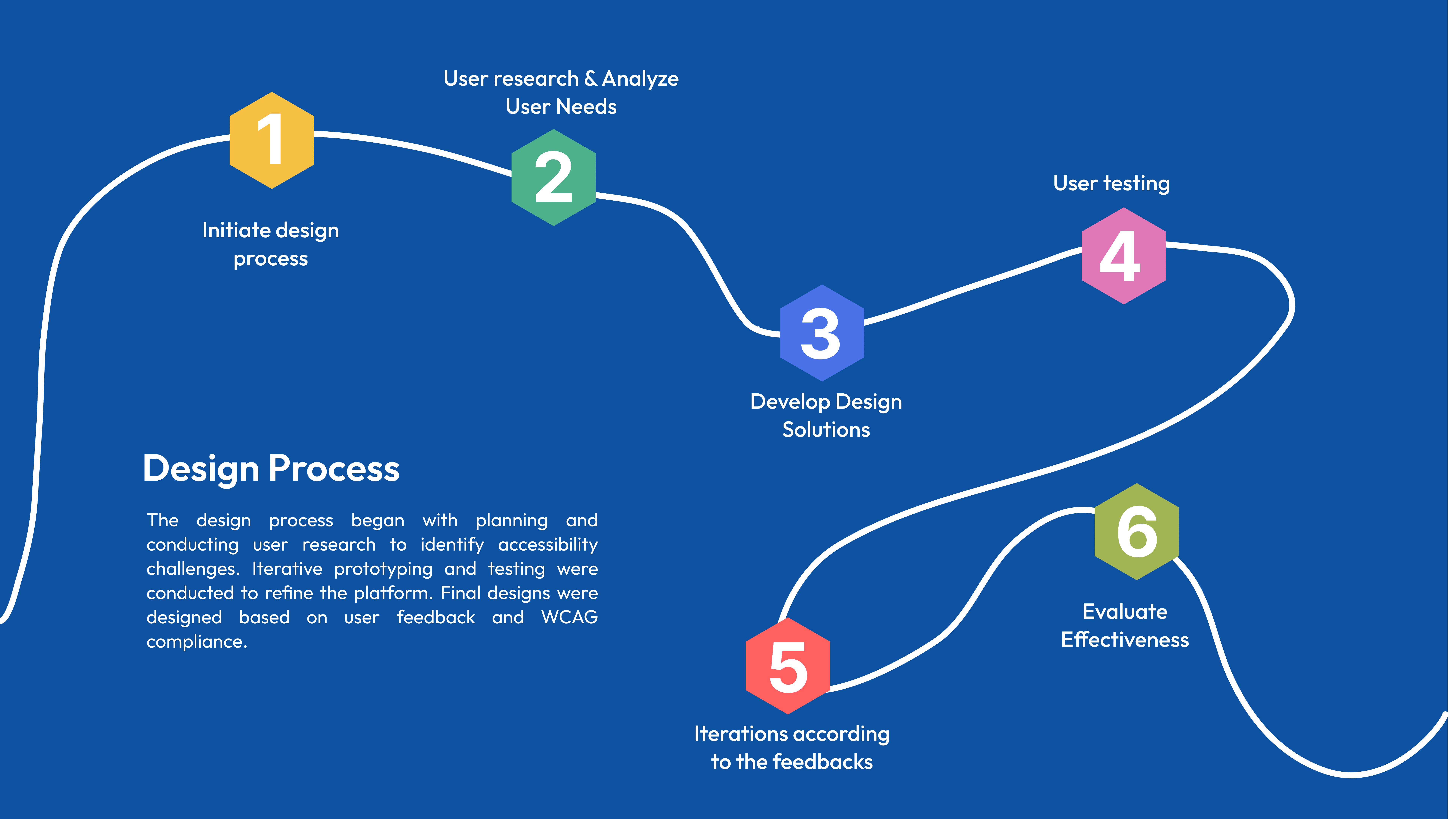 The problem was addressed through iterative design and user testing. Data analysis helped identify key pain points of the users with disabilities. Such as poor captioning, incompatible screen readers, and complex navigation in existing platforms. After testing of the platform I analyzed user feedback and task completion times during usability testing to identify areas for improvement. Based on the user feedback and testing iterations was done.